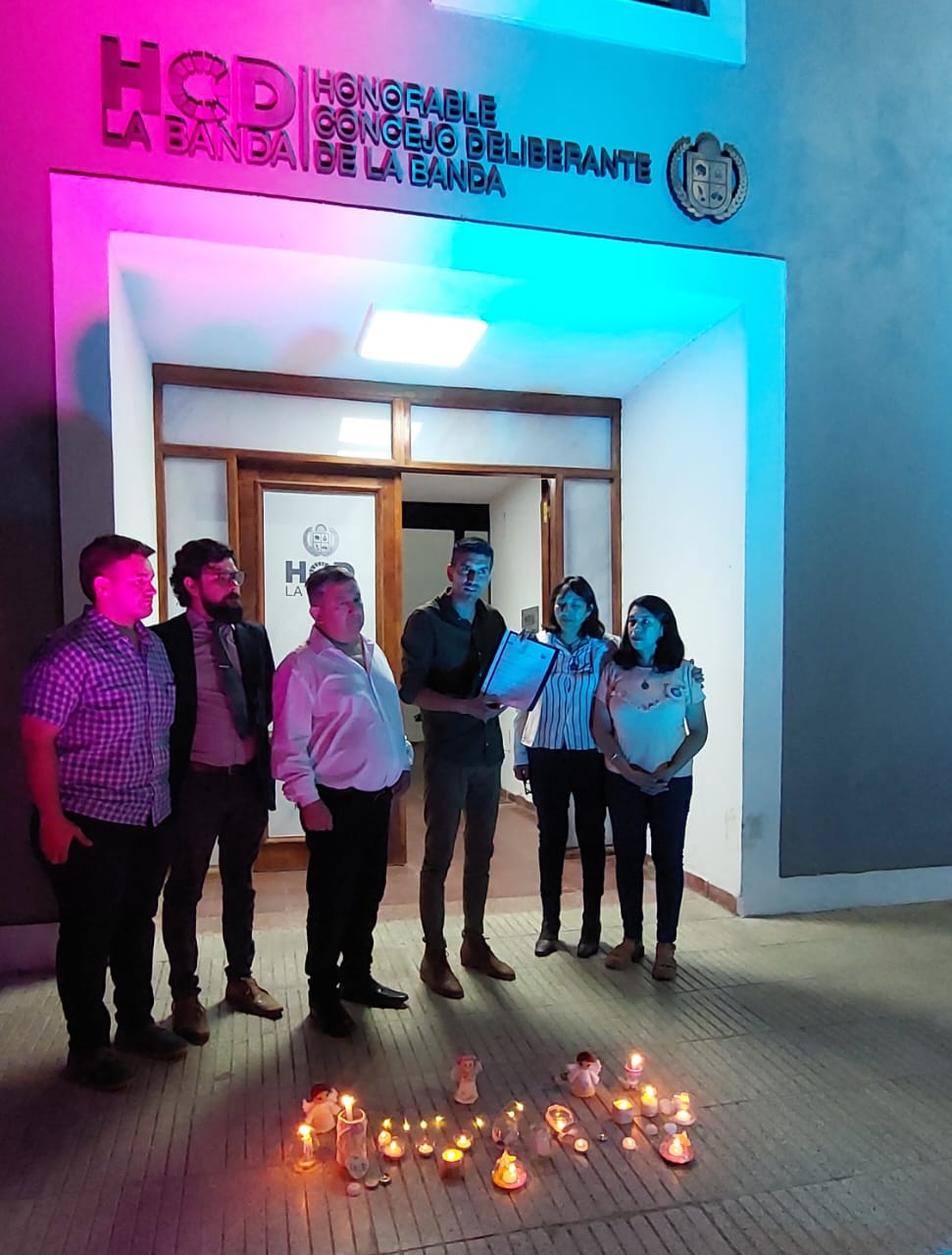 "Hoy se iluminó la fachada del Concejo Deliberante de colores celeste y rosa, como una forma de darle visibilidad a este tema, y sobre todo que las familias sepan que cuentan con nosotros, las autoridades, para hacer más liviano este difícil proceso en el que queremos acompañar", sostuvo el viceintendente Santillán