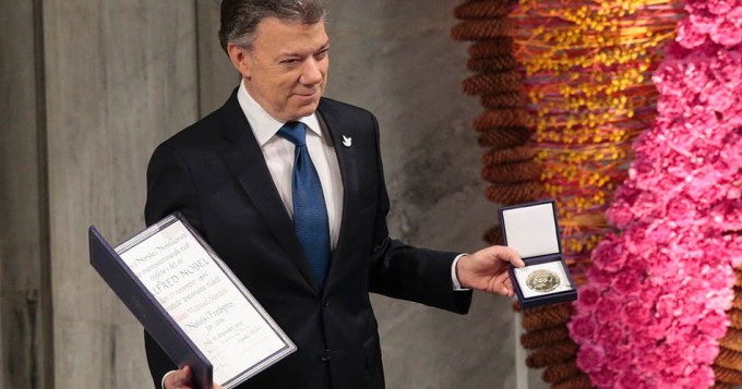 Según dijo Santos en su discurso este sábado, la noticia del premio “llegó como un regalo del cielo” y le dio fuerzas para sellar un pacto renegociado, que incluyó propuestas de la oposición y que fue refrendado la semana pasada en el Congreso, donde tiene mayoría.
