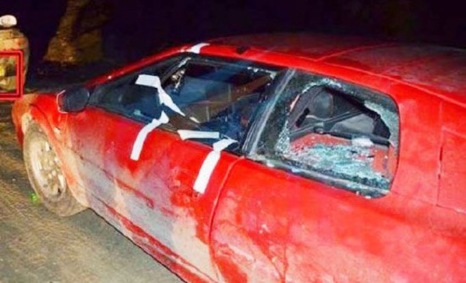 Otro de los vehículos tenía en su patente el número de argentinos caídos en combate. Tras el repudio, llegaron las agresiones. En su paso por Tolhuin, los autos fueron apedreados por personas apostadas al costado de la ruta que llevaba al programa hacia Chile.