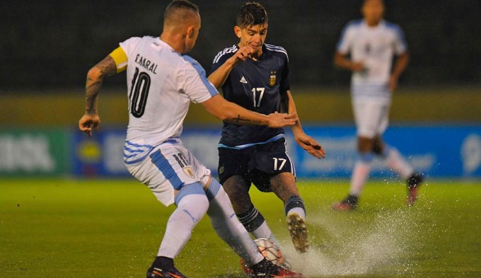 Así, Argentina logró inquietar al arquero uruguayo Santiago Mele con centros desde ambos costados, con Nicolás Zalazar también sumado al ataque por el sector derecho, pero que no lograron abrir el marcador.