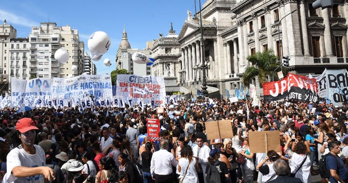 En la misma línea, se expresó el secretario general de la Unión de Docentes Argentinos (UDA), Sergio Romero, quien estimó que el acatamiento es de un “90 por ciento en las escuelas públicas de gestión estatal”. Además, aseguró que estas 48 horas de paro y movilización será "el inicio de un plan de lucha”.