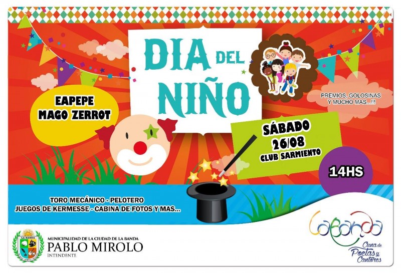 En el marco del festejo del Día del Niño, la Municipalidad de La Banda realizará un gran evento en el Club Atlético Sarmiento el sábado 26 de agosto, desde las 14.