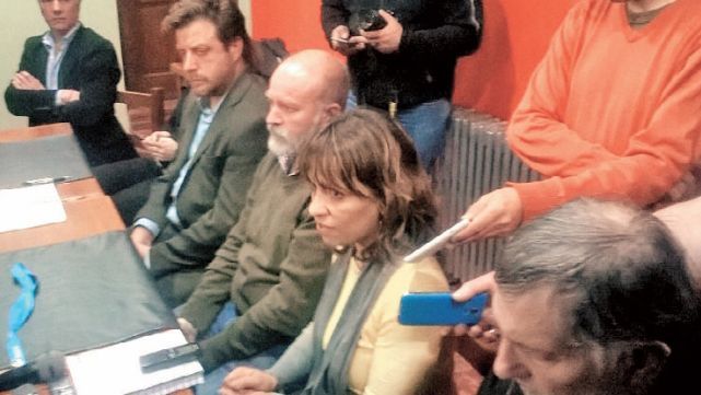 , Sergio, con abogados, brindando una conferencia de prensa.