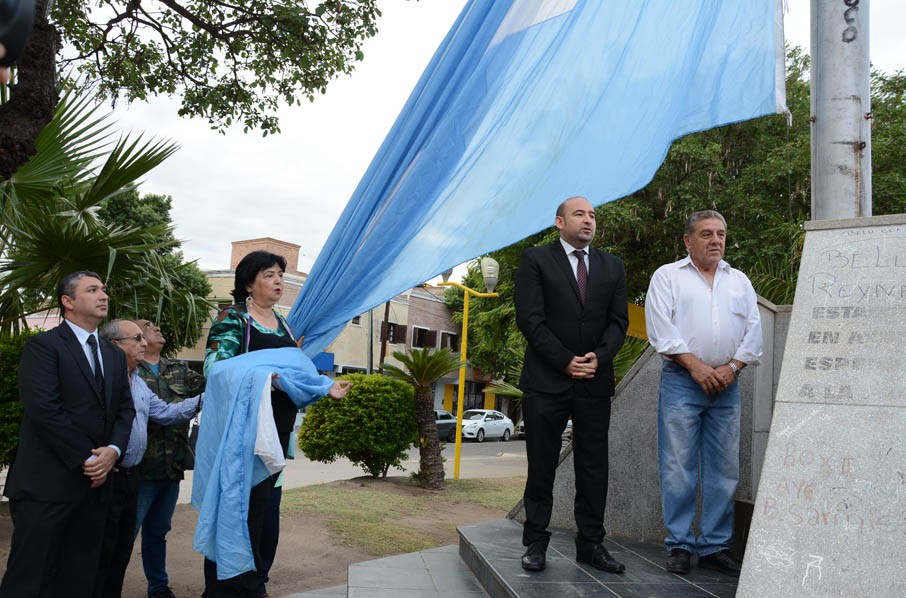 El homenaje fue encabezado por el intendente Pablo Mirolo, acompañado por funcionarios municipales, concejales, alumnos de escuelas de los niveles inicial, primario y secundario e instituciones intermedias.