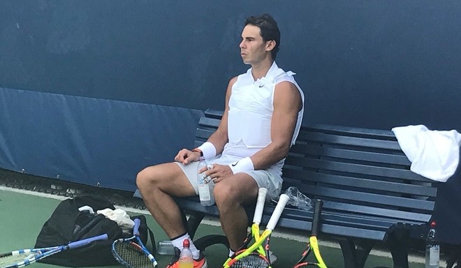 ¿Acaso Rafa no deja todo en la cancha? ¡Para nada! Pero a raíz de las altas temperaturas en el US Open, probó? un chaleco refrigerado en el entrenamiento de este lunes. ¿Qué tal?