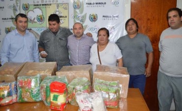 En la mañana del lunes el intendente Pablo Mirolo entregó alimentos no perecederos, como fideos, arroz, salsas, yerba, azúcar, pebetes de paleta y queso y bollitos dulces, al grupo “Peregrinos a Pie San Cayetano”, quienes iniciarán la procesión este martes por la tarde hacia la provincia de Catamarca.