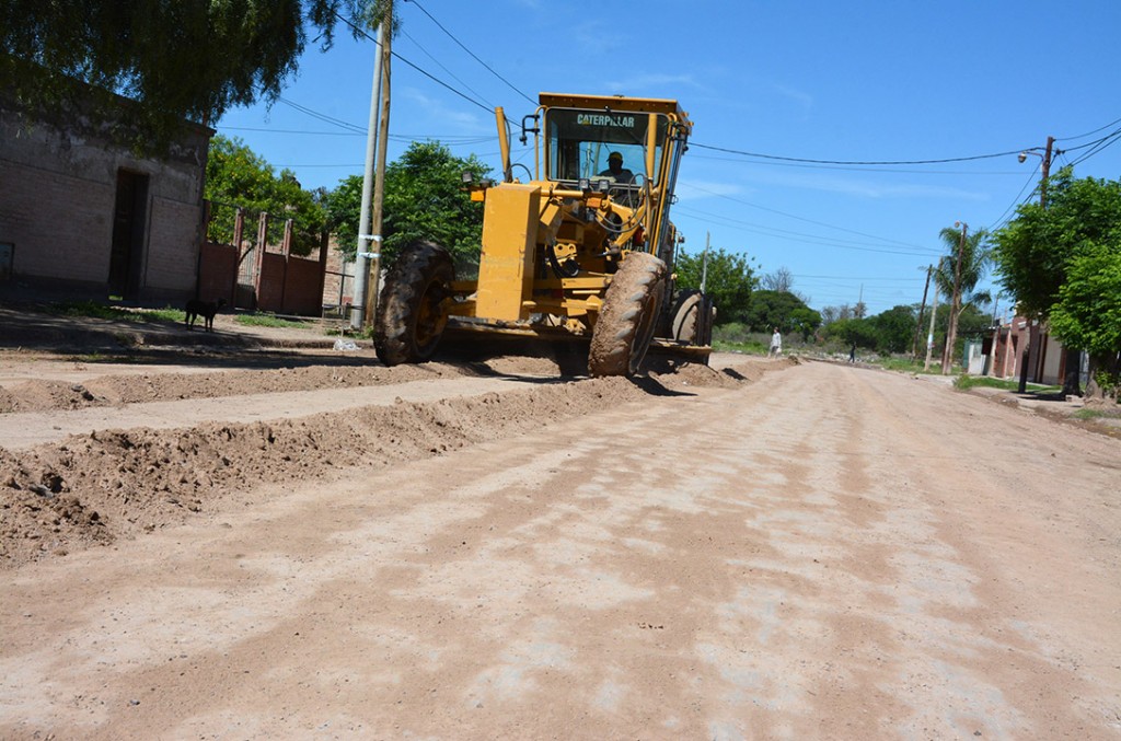 Este lunes se realizaron tareas de nivelación con motoniveladoras en la calle Nº 10 del barrio San Fernando y Constitución; también en los accesos al Central Argentino y en el barrio Ramos Taboada.