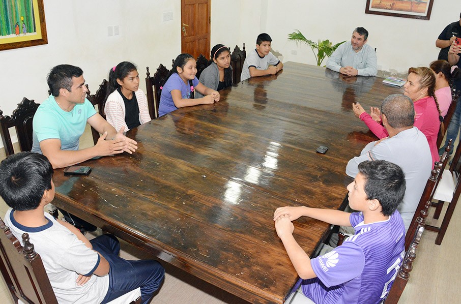 En su recorrido por esta ciudad las delegaciones de las escuelas Nº 4239 Cabo Ismael Maldonado, del paraje Sauzal II, y Nº 4146 Indígena, del paraje Zanja Honda, a cargo de los docentes José Alberto Abregú y Virginia Villalba, fueron recibidos por el jefe de gabinete, Miguel Estefán a quien agradecieron la hospitalidad del intendente Pablo Mirolo durante los días que permanecieron de visita e invitaron a participar de las festividades para el año próximo.