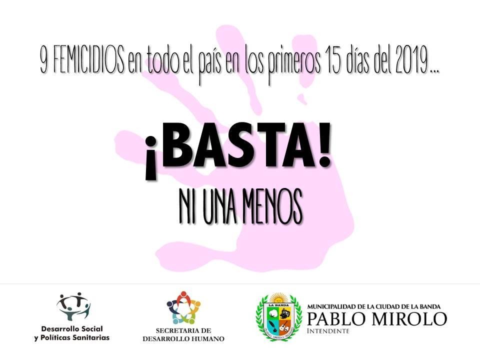 La Dirección de Desarrollo Social y Políticas Sanitarias de la Municipalidad de La Banda, a través de la Oficina de Género, manifestó su repudio y preocupación por la alarmante cifra de casos de femicidio ocurridos en el país durante las primeras semanas del 2019.