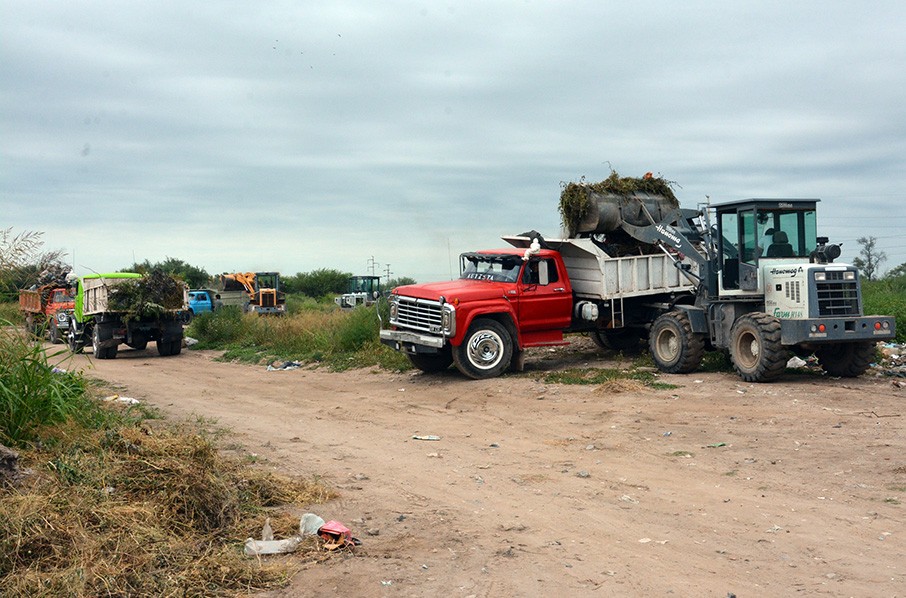 Con este fin se pusieron en funcionamiento más de veinte camiones volcadores, palas cargadoras, motoniveladoras y personal con motoguadañas para la eliminación de residuos domiciliarios, escombros y maleza en un terreno baldío de aproximadamente 300 metros de extensión, ubicado entre las calles 12 y 9.