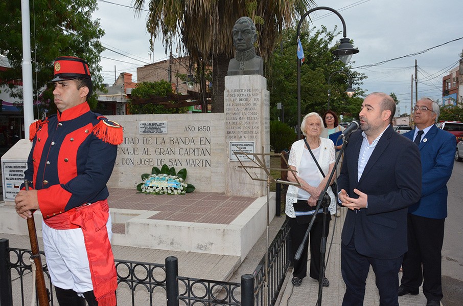 El intendente Pablo Mirolo destacó el legado del general José de San Martín en el acto que se desarrolló la mañana de este lunes, organizado por la Asociación Civil Cultural Sanmartiniana de La Banda con motivo del natalicio del prócer, ocasión en la cual hizo un llamado a todos los bandeños. "Sigamos el sueño de San Martín de construir un país mejor para todos", dijo.