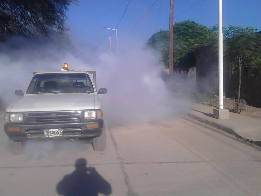 Durante la jornada del lunes, las tareas de fumigación se realizaron en los barrios Independencia, El Tabique y Los Naranjos. Cabe destacar que para esta tarea se utiliza el insecticida permetrina a través de la termonebulización, producto que no es tóxico para los seres vivos de sangre caliente.