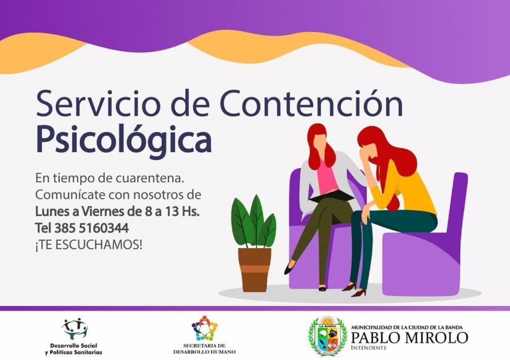 Como una forma de complementar la asistencia brindada a los vecinos de la ciudad desde diferentes áreas de la comuna, se habilitó el servicio de asistencia psicológica a través de medios virtuales con el fin de contener a quienes son afectados emocionalmente por la pandemia.