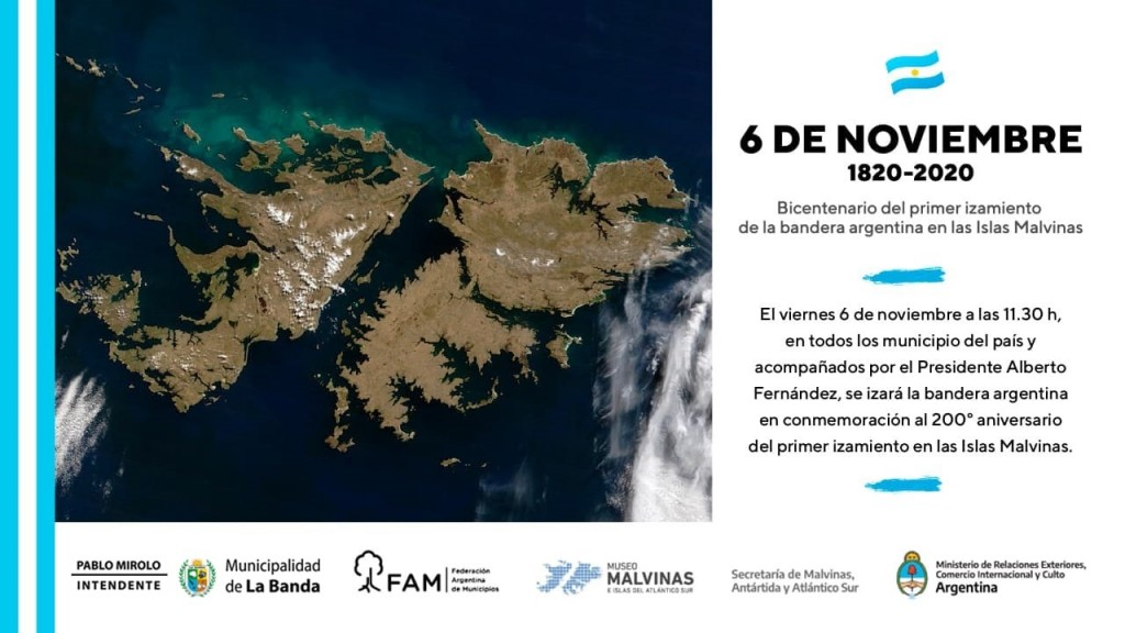 La Municipalidad de La Banda se adhiere en modo virtual al bicentenario del primer izamiento de la bandera nacional en las Malvinas, que se cumple el próximo 6 de noviembre, se conmemorará con gestos alusivos en todo el país, un acto central encabezado por el presidente Alberto Fernández y la puesta en marcha del Consejo Nacional de Asuntos Relativos a las Islas que, con una composición plural, buscará asegurar "políticas de Estado a mediano y largo plazo" en la cuestión.