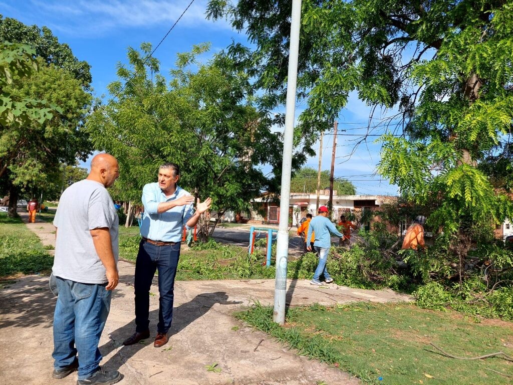 El jefe comunal bandeño verificó la situación de las zonas afectadas. Personal municipal levantó árboles caídos y activó los sistemas de desagote