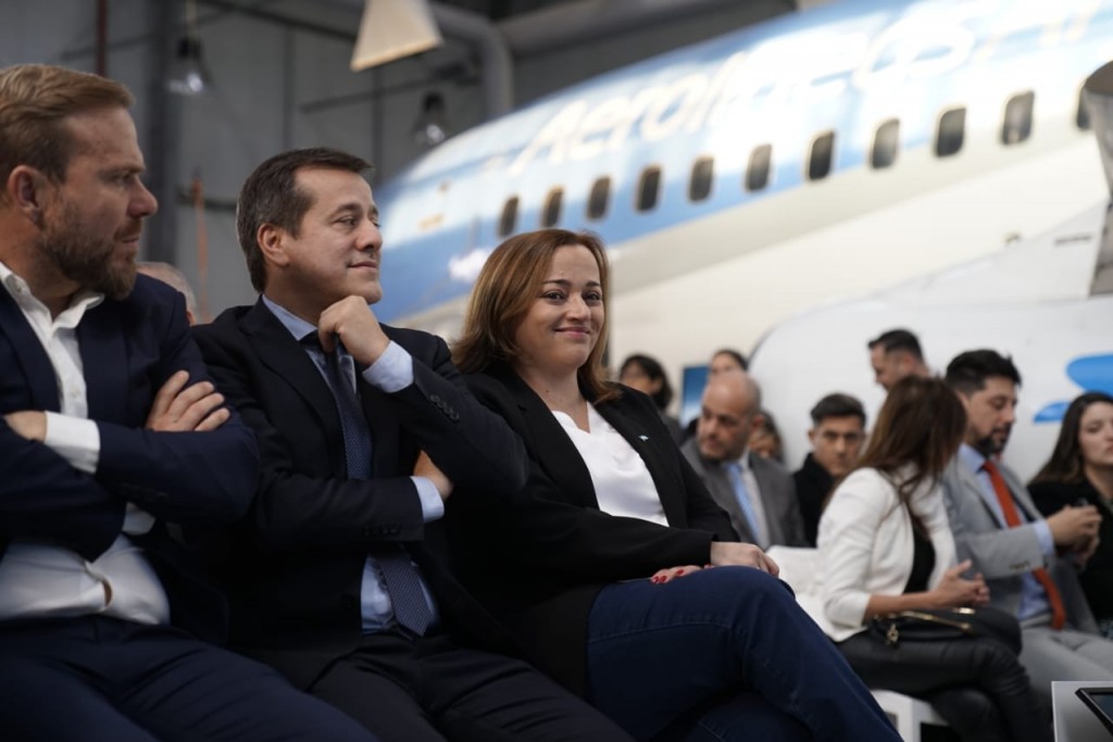 En declaraciones previas a la inauguración de un nuevo simulador de vuelo con motivo de cumplirse 15 años de la recuperación de Aerolíneas Argentinas, la titular de la Cámara baja señaló que "es un día importante para los argentinos porque estamos recordando, con mucho orgullo, la reestatización de una aerolínea de bandera que no solo permite conectar al mundo con la Argentina, sino también a las provincias argentinas entre sí".