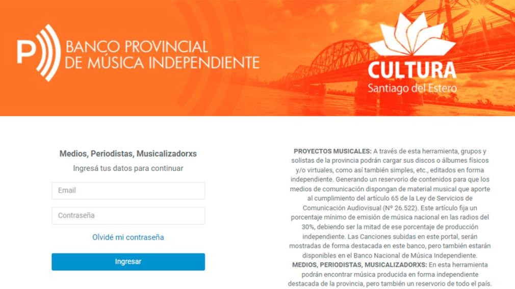 “Conjuntamente con el Instituto Nacional de la Música y la Asamblea Federal de la Música, que integramos todas las provincias, se ha decidido impulsar este proyecto, el Banco Provincial de Música Independiente de Santiago del Estero”, contó y agregó “está dirigido a músicos de todos los géneros. Van a tener la posibilidad de inscribirse en este banco, a través del INAM, subir sus canciones o discos enteros y al mismo tiempo puede funcionar como instructivo para hacer el registro en la Dirección General de Derechos de Autor en SADAIC, en ADI, CAPIF, para estar en un nivel profesional de producción y autoría”.
