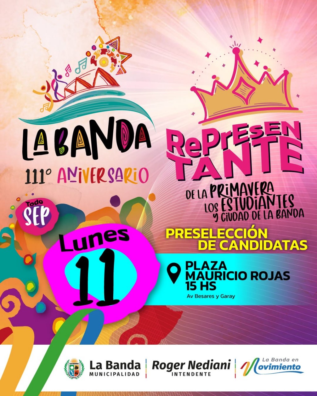 La Dirección de la Juventud dependiente de la Secretaría de Gobierno, invita a participar a las jóvenes bandeñas a la preselección de la representante de la primavera, los estudiantes y de la ciudad de La Banda.
