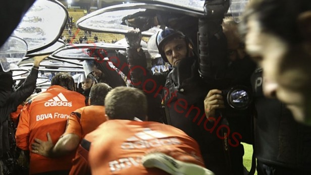 Las imágenes de televisión captaron a un grupo de simpatizantes intentando quemar la manga por la cual ingresaron los jugadores de River al campo de juego, pero lo que pasó dentro del túnel aún es un misterio. Las primeras versiones indicaban que los mismos hinchas que intentaron romper la manga habían arrojado algún tipo de gas tóxico para afectar la integridad física del plantel "millonario". El secretario de Seguridad Sergio Berni avaló esta teoría. Sin embargo en las últimas horas surgieron algunas voces que pusieron en duda la historia. Matías Figueroa es uno de los simpatizantes que estuvo anoche en la tribuna de socios norte de la Bombonera. En las redes sociales posteó un largo comentario sobre lo que vio. En Twitter hay historias similares de otros hinchas que estuvieron en la misma tribuna. El relato coincide con las sospechas de los dirigentes xeneizes, que desde la madrugada no emiten ningún comentario. La versión de Figueroa ratifica que hubo un grupo de simpatizantes que intentó quemar la manga con bengalas, pero el gas pimienta nunca salió desde la tribuna. Los hinchas creen que el químico fue arrojado por los policías que estaban dentro del túnel para custodiar el regreso del plantel visitante al campo de juego. Hay un dato que sostiene esta teoría: los que conocen este tipo de elementos de seguridad dicen que el gas naranja que manchó las camisetas de los jugadores de River es de exclusivo uso policial y no está a la venta para el público en general. Muchos otros hinchas que no estuvieron en el estadio destacaron que el arquero suplente de River, Julio Chiarini, responsabilizó a un policía. "Vos me tiraste, hijo de puta, cagón", repite. Marcelo Gallardo, el técnico "millonario", lo frenó y juntó al equipo fuera del alcance de las cámaras. Berni rechazó en público esta posibilidad y apuntó contra la dirigencia de la AFA y de la Conmebol por haber demorado más de una hora para tomar una determinación sobre la suspensión del partido. Además dijo que el operativo de seguridad fue "impecable" y se enojó cuando le preguntaron por el cacheo que realizan los efectivos de la Federal en los Estadios. "No seamos hipócritas, cuando suben 200 personas a un avión por poco te hacen un tacto rectal, lo que hacemos en los estadios no es un cacheo", especificó. Los dirigentes de Boca repiten que hicieron todo lo que estaban a su alcance. Destacan que contrataron a 1200 policías de la Federal y a 450 empleados de seguridad privada, cifra que duplica la de otros partidos Además hacen hincapié a la interna que viven "La 12". Ayer la rivalidad entre dos facciones de la hinchada quedó manifiesta cuando una de las bandas tomó el control de la tribuna media sur. La procedencia del gas pimienta no cambia la vergonzosa foto que dejó el clásico, pero sí podría favorecer a los xeneizes que hoy pelean en la Conmebol para evitar una dura sanción y tener la chance de jugar los 45 minutos que quedaron pendientes de la serie. Una vez desatado el escándalo y confirmada la suspensión del encuentro, hubo otras graves fallas de seguridad. Los jugadores de River tuvieron que esperar más de una hora para dejar el campo de juego. La actitud poco solidaria de sus colegas de Boca agravó las cosas. Esta vez sí la pelota quedó manchada.