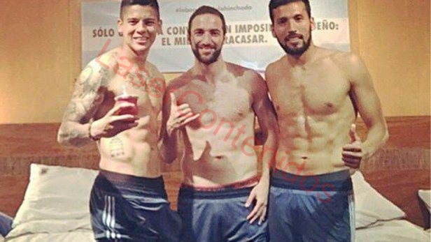 Marcos Rojo compartió en su cuenta de la red social Instagram una foto con Gonzalo Higuaín y Ezequiel Garay en la concentración en La Serena. En la imagen, los tres futbolistas están en paños menores, sin embargo los comentarios de los usuarios se centraron sobre el lateral de la selección, quien decidió eliminar el post.