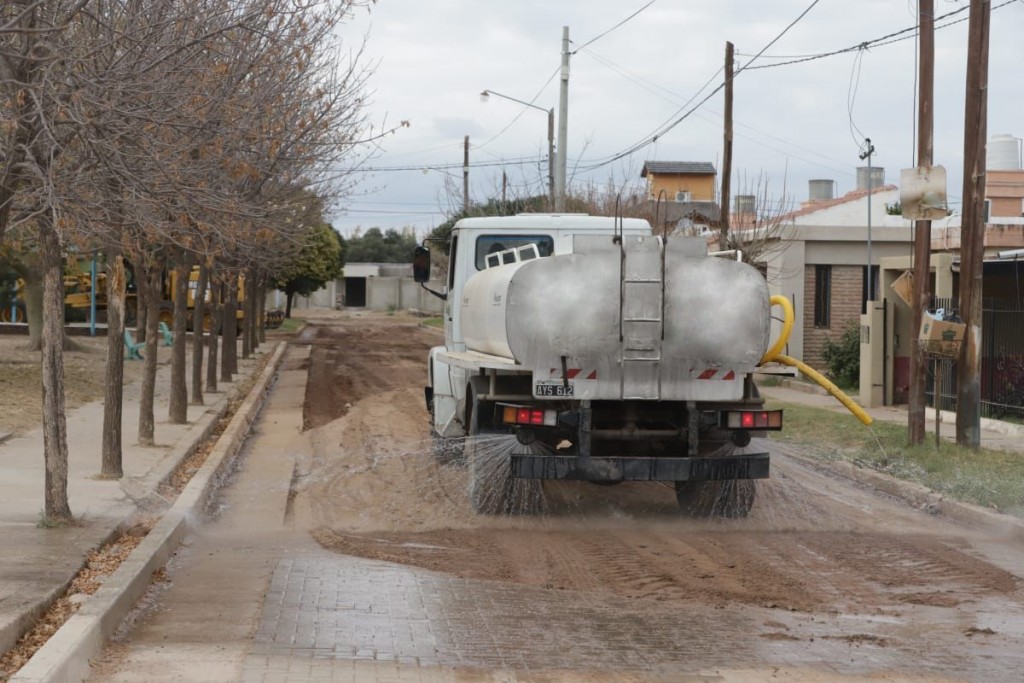 Por disposición del intendente Roger Nediani, el cronograma de riego de calles continuará desarrollándose durante toda la semana con el fin de mantener en condiciones los espacios verdes y contribuir al bienestar de los vecinos.