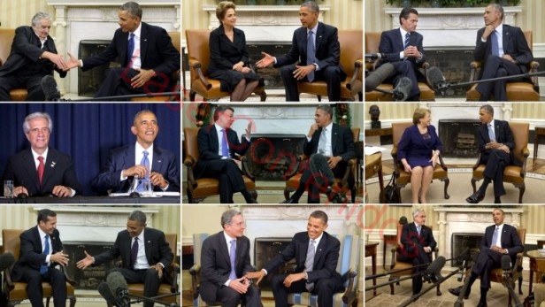 El estadounidense se reunió con los chilenos Piñera y Bachelet; los brasileños Lula da Silva y Rousseff; los uruguayos Mujica y Tabaré Vázquez; el peruano Humala; los mexicanos Calderón y Peña Nieto; y los colombianos Uribe y Santos