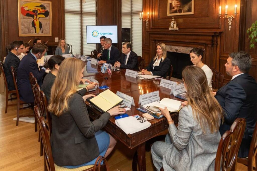 En este caso participó de un encuentro con autoridades de Amazon, Reuben Smith-Vaughan, director de Políticas Públicas para América Latina; de Google, Kezia McKeague; del CSIS -Strategic and International Studies, Romina Bandura; de Verizon, Ivana Kriznic; el CEO de Increase, Sebastian Cadenas; del instituto Milken, Rachel Fox y María José Ochoa; el Director de Marvell Semiconductors, Luke Murry; Paula Pinha de Roblox y Martin S. Morales de ArkoInternational.