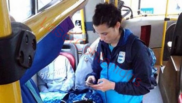 La historia detrás de la foto de una atleta viajando en colectivo