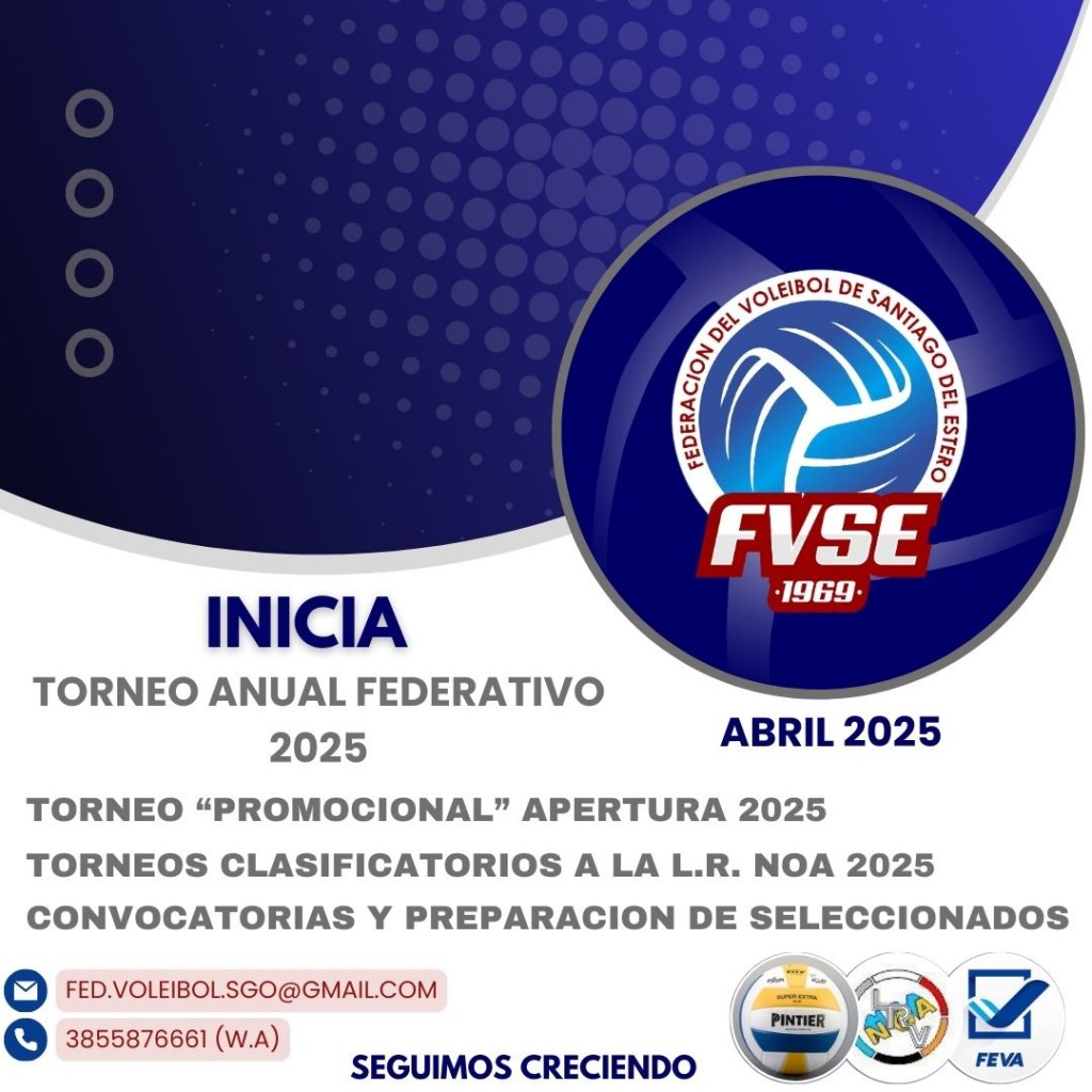 La Federación del Voleibol de Santiago del Estero F.V.S.E continua a paso firme, finalizado el Torneo Apertura 2025 con la coronación de Ateneo voleibol club en las categorías sub 14, sub 16, sub 18 y sub 21 femenino; y por jugarse las finales restantes el próximo fin de semana del 11, 12 y 13 de este mes