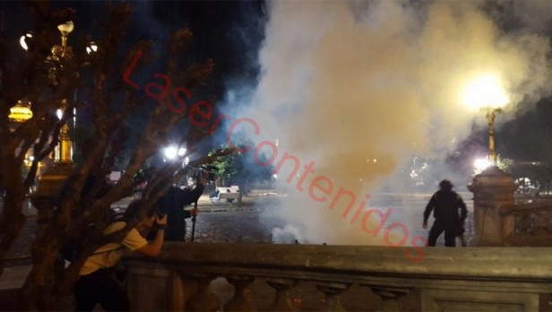 La policía intentó desalojar con balas de goma y gases lacrimógenos a las miles de personas que marcharon hasta la Casa de Gobierno