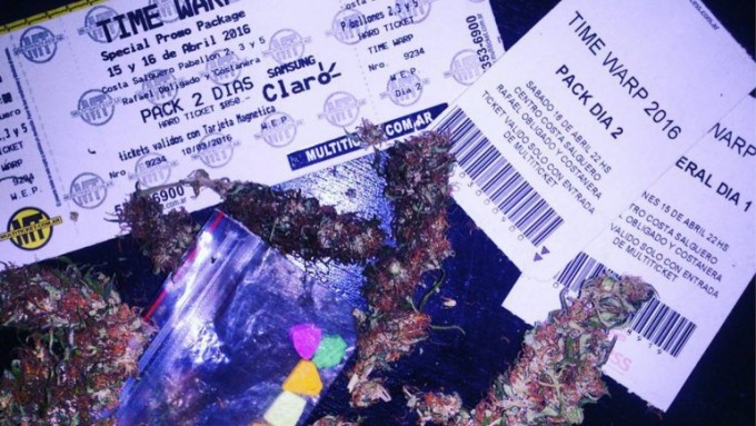 El sábado último, cerca de las 3 AM, el prefecto Alberto Gabriel Pandiani, uno de 20 efectivos de la Prefectura Naval contratados como seguridad adicional por Dell Producciones SA en la fiesta Time Warp en Costa Salguero, recibió un curioso paquete: una bolsa gris llena de droga.Tenía gran cantidad de pastillas, porros armados y frascos color ámbar posiblemente cargados de GHB, un fuerte estimulante líquido.