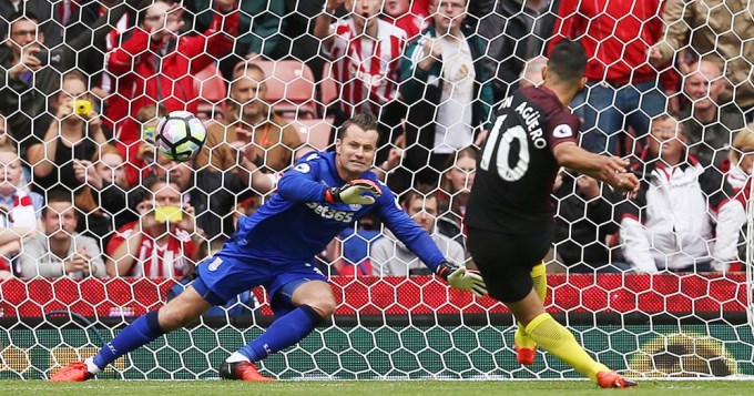 Sergio "Kun" Agüero anotó dos goles para su equipo, el Manchester City, que superó como visitante al Stoke City por 4-1 en un partido válido por la segunda fecha de la Premier League de Inglaterra.