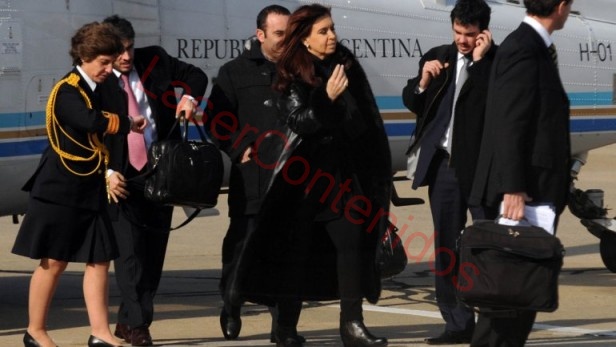 Antes de subir al Tango 01, la mandataria mantuvo una videoconferencia con Jorge Capitanich durante un acto que el jefe de Gabinete encabezó en su provincia, Chaco. En ese contacto, destacó el crecimiento industrial de ese distrito y lo calificó como "la contracara" de "lo que proponen los holdouts".