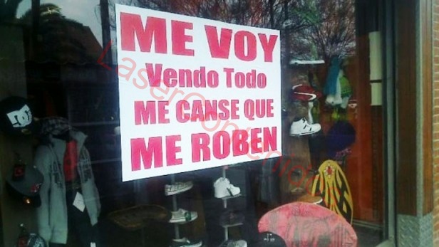 La drástica medida puede verse reflejada en la vidriera de "Sol", su negocio de la avenida Carlos Tejedor al 700: "Me voy. Vendo todo. Me cansé que me roben". Rosa es diseñadora de modas, dice que este país es "hermoso", pero que la situación "no da para más". La última vez que entraron a robarle, el martes pasado, recibió un culatazo y le gatillaron un arma en la cabeza. Se llevaron dinero y prendas de vestir en bolsas de residuos. "Me cansé de luchar, ya no tengo más fuerzas, no quiero esto para mi vida ni para mis hijos", dijo la mujer. Un día después del último atraco, entrevistada por el sitio marplatense de noticias 0223, señaló: "Lo de ayer fue la gota que rebasó el vaso, esto se fue de las manos totalmente, no tengo más ganas de seguir". Entre la angustia y la resignación, Rosa reconoció que todos los comercios de la zona padecen la misma problemática y que la avenida Tejedor "está terrible". "Recién ahora tengo la policía afuera custodiando el local pero ya es tarde, tengo la decisión tomada", lamentó la comerciante.