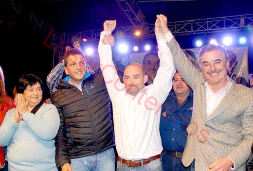 El candidato del Movimiento Viable Pablo Mirolo se adjudicó la victoria “en todas las mesas. El referente del Frente Renovador Sergio Massa vino desde Buenos Aires y lo acompañó en los festejos.