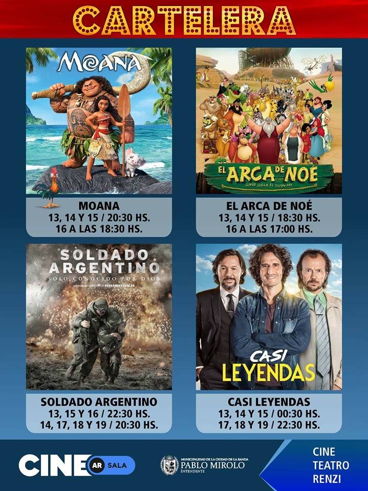 En el marco de este fin de semana largo por el Triduo Pascual, el Cine Teatro Municipal Renzi- Espacio INCAA realizará varios preestrenos con filmes para todas las edades. Moana, El Arca de Noé, Soldado Argentino y Casi Leyendas, serán las propuestas que estarán en cartelera para disfrutar.