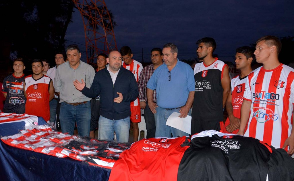 El intendente Pablo Mirolo entregó indumentaria deportiva al equipo de primera división del Club Agua y Energía que participa en la Liga Santiagueña de Fútbol, como parte de las acciones realizadas por la actual gestión municipal a favor de la promoción del deporte en la ciudad.
