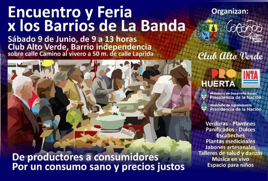 La Dirección de Turismo de la Municipalidad de La Banda y el Instituto Nacional de Tecnología Agropecuaria (Inta) realizarán el próximo sábado 9 de junio una nueva edición de la denominada “Feria Itinerante por los Barrios de la Ciudad”, en el predio del Club Alto Verde del barrio Independencia, sobre camino al vivero a 50 metros de calle Laprida.