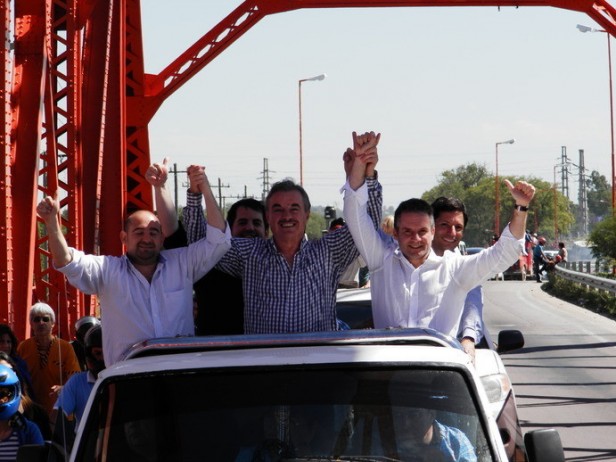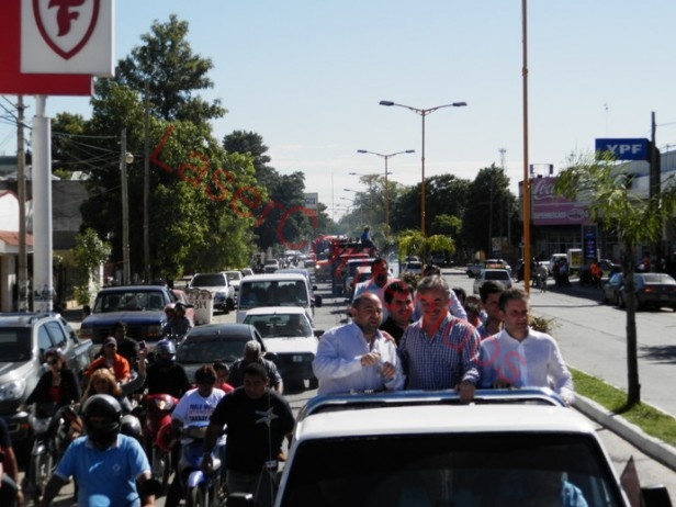La caravana, encabezada por el intendente de la ciudad, Pablo Mirolo, el concejal Eduardo Chabay Ruiz y diputados y dirigentes nacionales del Frente Renovador partió del frente del Palacio Municipal hasta Casa de Gobierno.