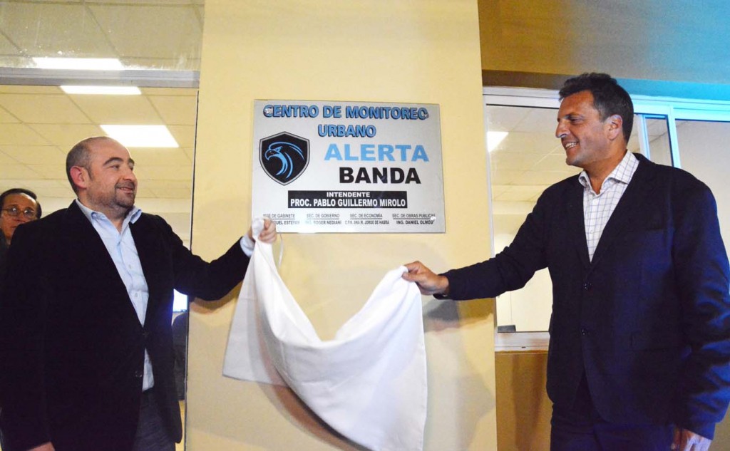 Una verdadera multitud acompañó al intendente Pablo Mirolo y al máximo referente del Frente Renovador, Sergio Massa, en el acto de lanzamiento oficial del programa Alerta Banda, con la inauguración del edificio del Centro de Monitoreo y la puesta en funcionamiento del botón antipánico como herramienta tecnológica que contribuirá en la lucha contra la delincuencia en la ciudad.