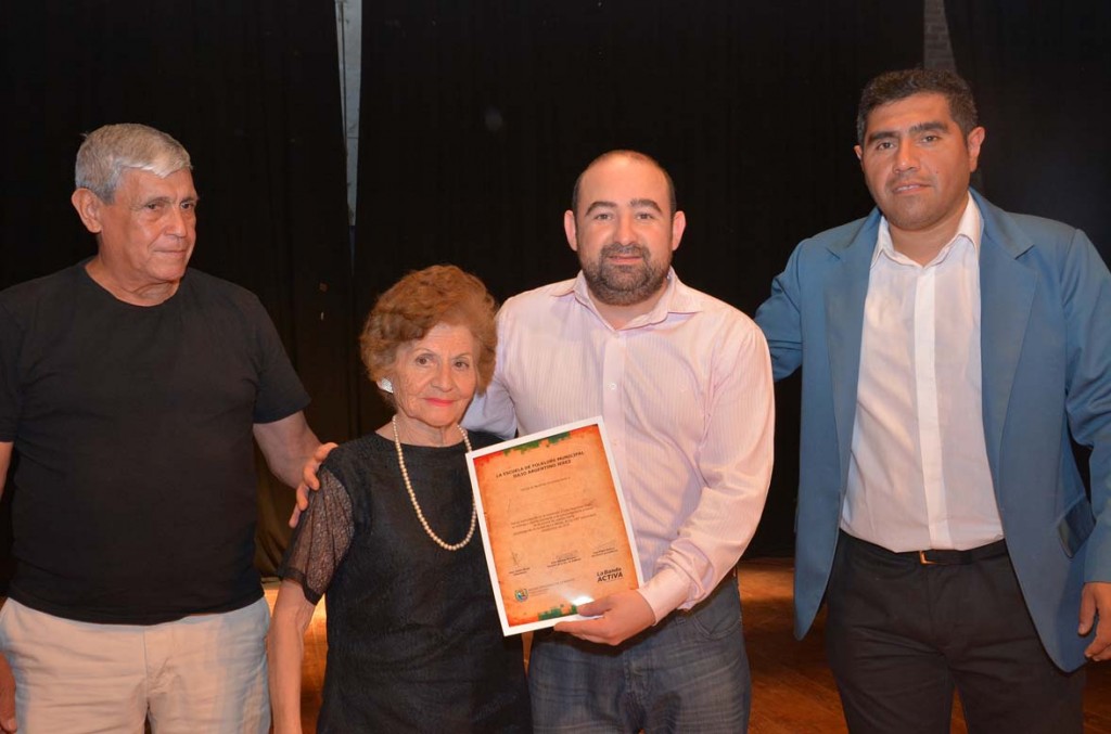 Durante el encuentro Mirolo, el Secretario de Gobierno Roger Nediani y la Diputada Provincial Verónica Larcher entregaron distinciones a los músicos Néstor Garnica, Alicia Pereyra y Armando Santillán, y a los profesores de danzas Ramona Ramírez, Ramona Barraza, Gaudencio Acuña y Héctor Saavedra.