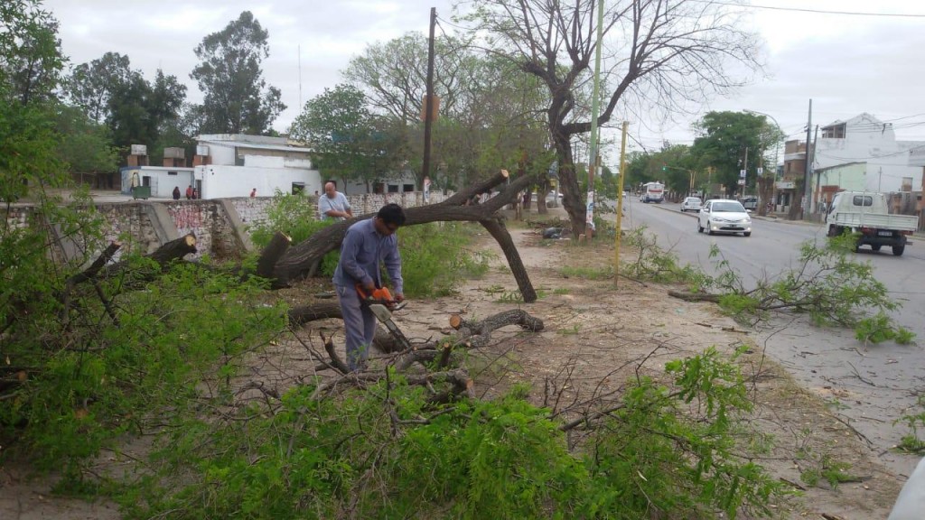 Por tal motivo, personal de la Dirección de Parques y Paseos, dependiente de la Secretaría de Servicios Públicos, realizó el trozado y recolección de ramas de grandes dimensiones, tanto de las que habían caído sobre veredas y las calzadas, como también gajos que quedaron colgados.
