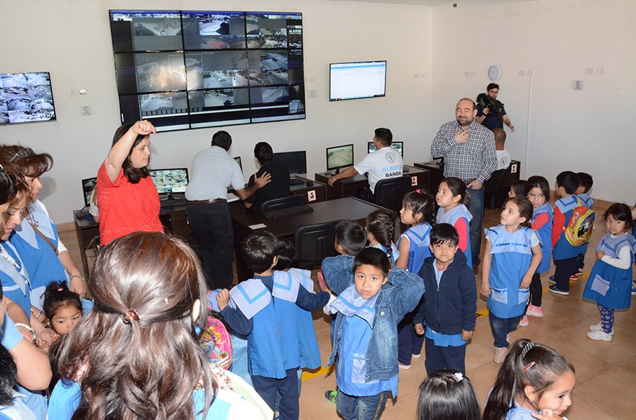 Como parte del recorrido, los niños visitaron las instalaciones del Centro de Monitoreo donde se desarrolla el Programa Municipal “Alerta Banda” ubicado en avenida Besares y Avellaneda.