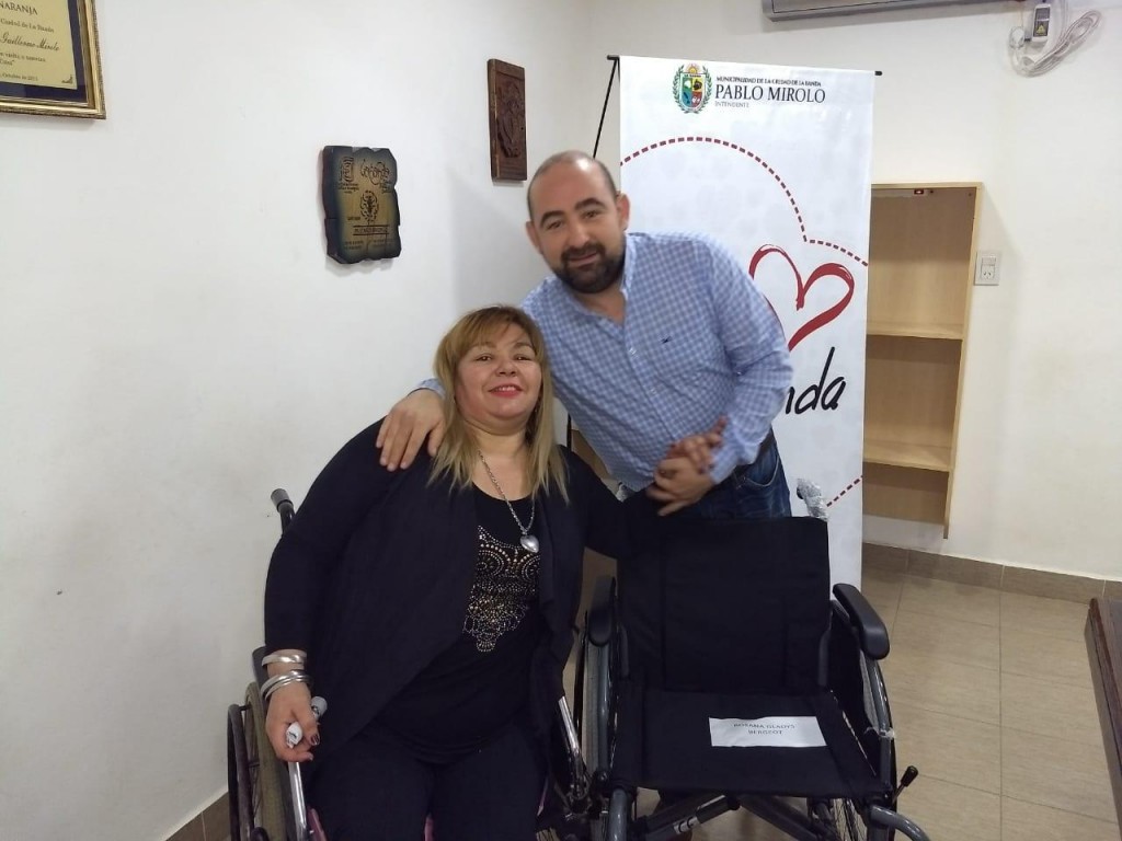 En la oportunidad, Rosana Gladys Bergeot de 47 años del barrio 25 de Mayo Ampliación, sufrió hace 4 años un accidente automovilístico, en donde tuvo fractura de cadera, de pelvis, la amputación de su pierna derecha, entre otros problemas de salud y como consecuencia quedo en silla de ruedas. Esta mañana, el jefe comunal le hizo entrega de una nueva silla de ruedas que le permitirá mejorar su movilidad.